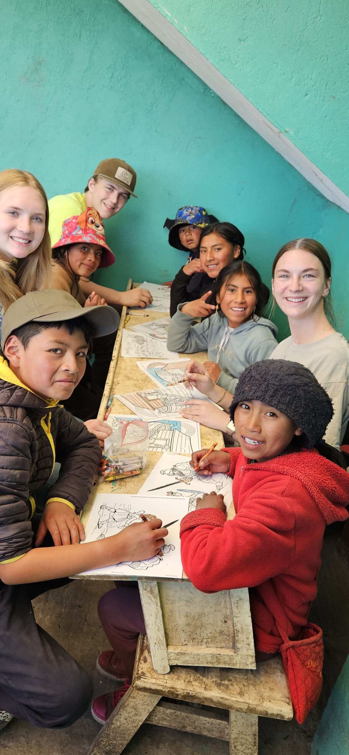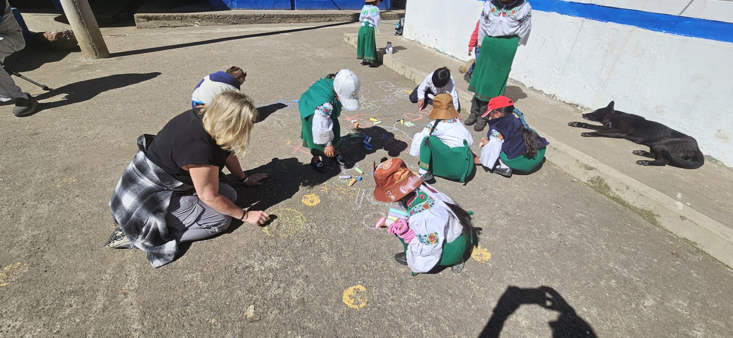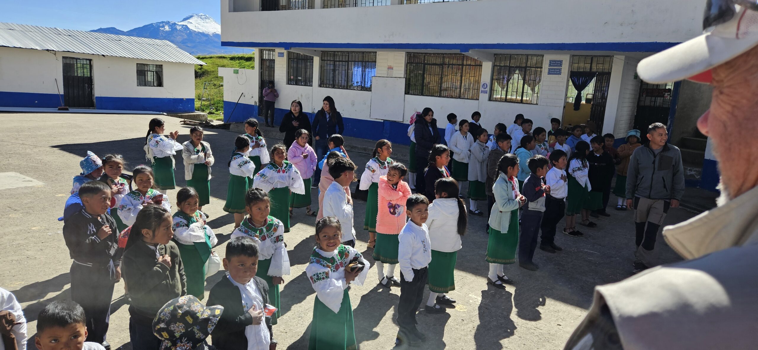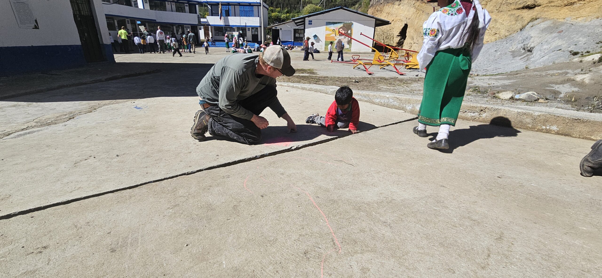 Breakfast and devotions at 7am again and then off to our first workday at Lote Tres. A couple members of our team headed directly up to the church to begin setting up the medical caravan and to open the doors for patients. The rest of the team was able to stop at the school for about an hour. While at the school we were sung the Ecuadorian National Anthem in Quichua (the native language spoken by many in the indigenous communities) and the student body leaders gave us a welcome. After introducing ourselves we were able to break open some new playground toys for them… Soccer balls, jump ropes and sidewalk chalk. The children had a blast playing with all of us. I think some team members were worn out before reaching the church from all the playing. We learned that the children usually wear uniforms to school but on Mondays they dress in their more traditional clothing. We also learned that the children could start school as young as 3 and go for half days until they are 7!