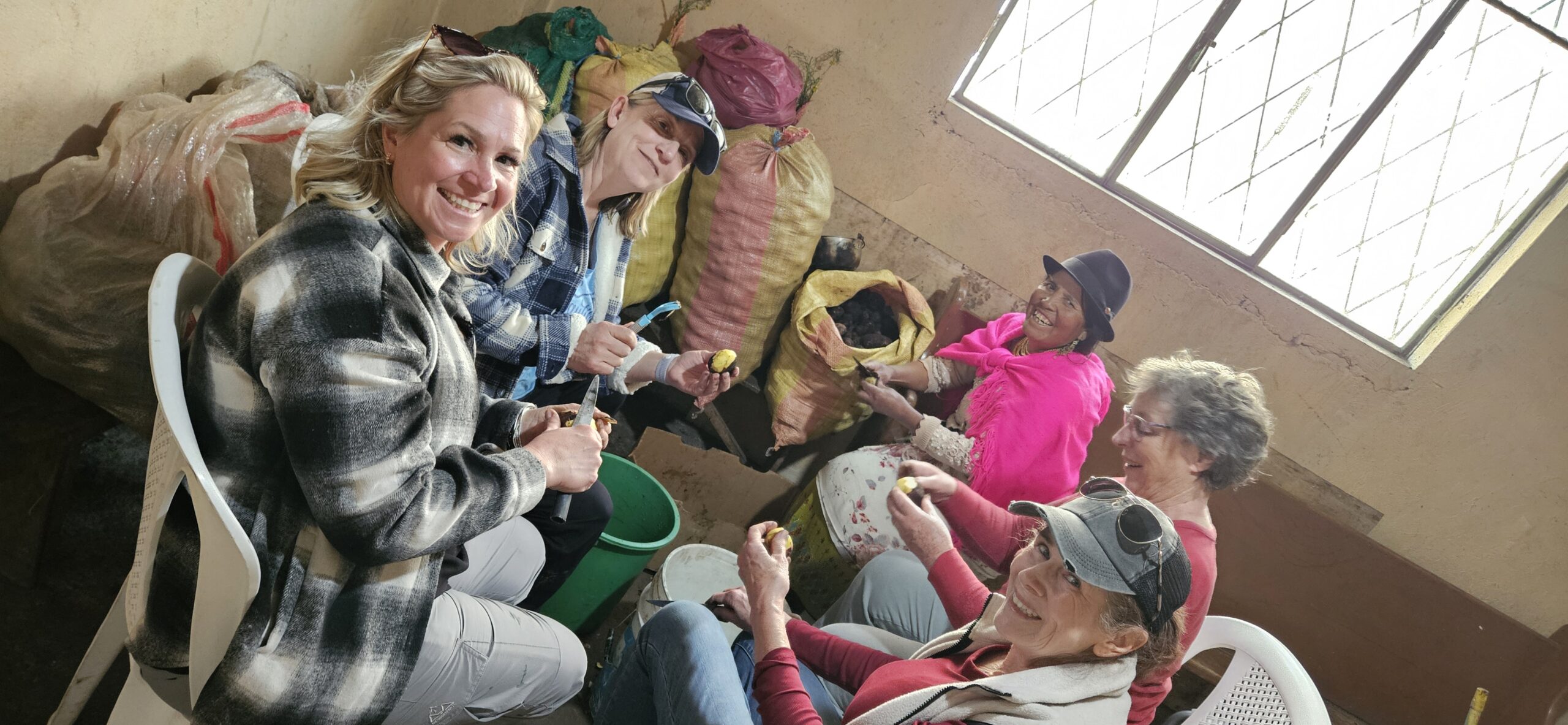 Once construction was underway there was a lot to do. We hauled cinder blocks, mixed concrete (BY HAND ON THE GROUND WITH A COUPLE SMALL SHOVELS) hauling it with full buckets to fill forms, fabricated trusses for the roof and more. Inside the church the medical caravan stayed busy with patients and once the ladies from church were done seeing the doctor, there were lots of potatoes to peel in the kitchen. Many of the men on our team were humbled by being out worked by these tiny 4 foot tall Ecuadorian women and many of the women were humbled by the speed at which Ecuadorian women could peel potatoes with a knife. Our American women were kind of asked to leave the kitchen so the Ecuadorian women could quickly finish making lunch! We all had a good laugh at that.